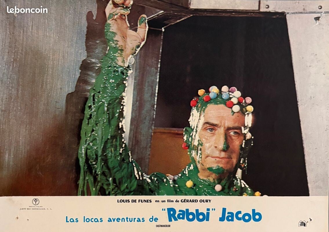 Lot de 12 lobby Cards espagnoles du film de Gérard Oury Rabbi Jacob, avec Louis de Funès. Chaque photo a de discrets trous de punaise mais est globalement en superbe état.