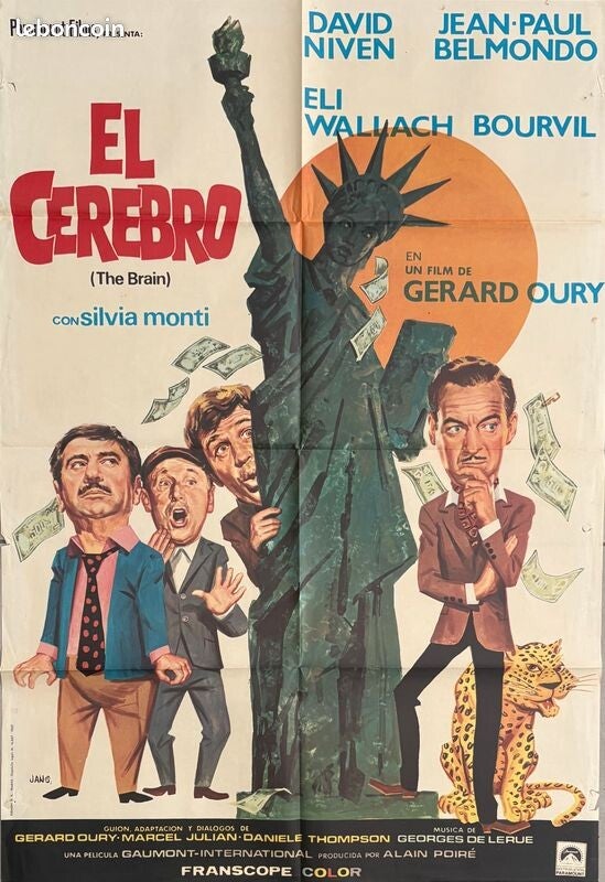 Affiche Cinéma originale espagnole du film "Le Cerveau", de Gérard Oury avec Jean-Paul Belmondo et Bourvil.