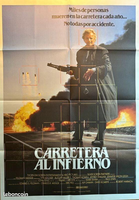 Affiche Cinéma originale espagnole du film "The Hitcher ", le mythique thriller avec Rugter Hauer.