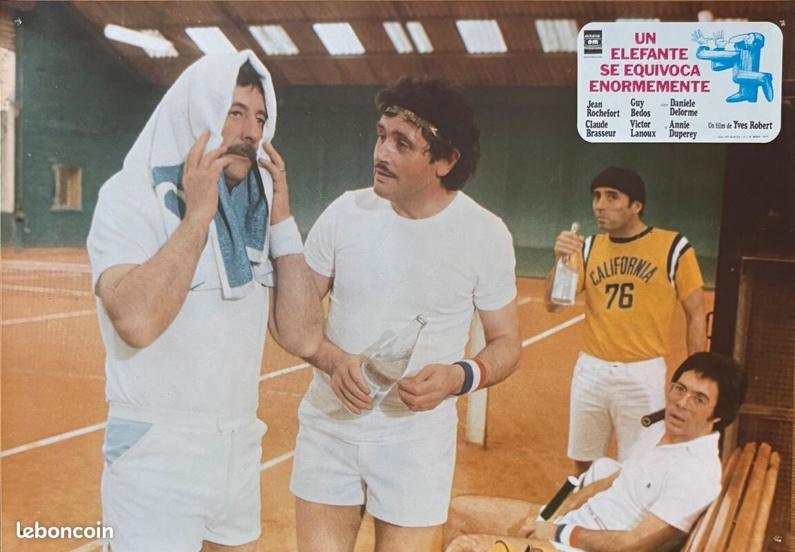 Set complet de 12 photos d'exploitation espagnoles du film Un éléphant ça trompe énormément, de Yves Robert avec Jean Rochefort, Claude Brasseur, Victor Lanoux et Guy Bedos..