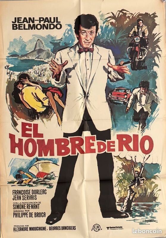 Affiche Cinéma originale espagnole du film "L'Homme de Rio", avec Jean-Paul Belmondo et Françoise Dorléac.