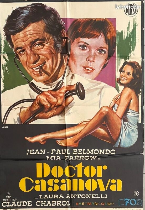 Affiche Cinéma originale espagnole du film "Docteur Popaul",de Claude Chabrol, avec Jean-Paul Belmondo et Mia Farrow.