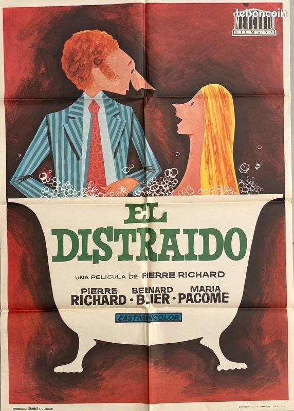 Affiche Cinéma originale espagnole du film "Le Distrait", avec Pierre Richard. Il s'agit d'un format de 70 x 100 cm.