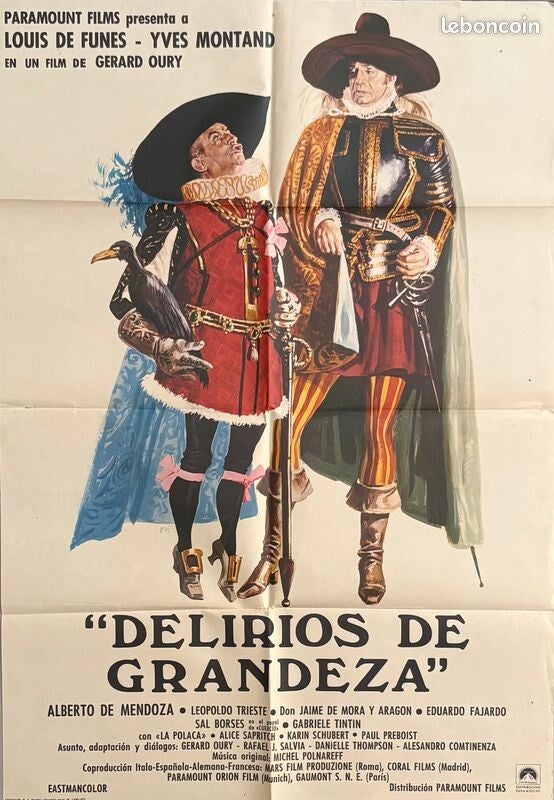 Affiche Cinéma originale espagnole du film "La Folie des Grandeurs", avec Louis de Funès et Yves Montand.