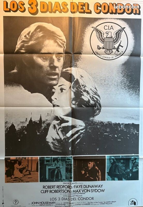 Affiche Cinéma originale espagnole du film "Les trois jours du Condor ", avec Robert Redford et Faye Dunaway.
