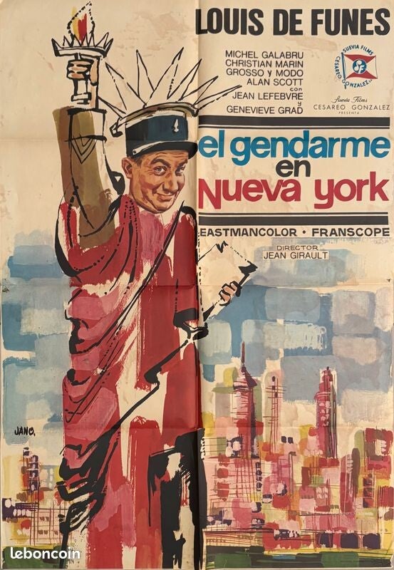 Affiche Cinéma originale espagnole du film "Le gendarme à New York", avec Louis de Funès.