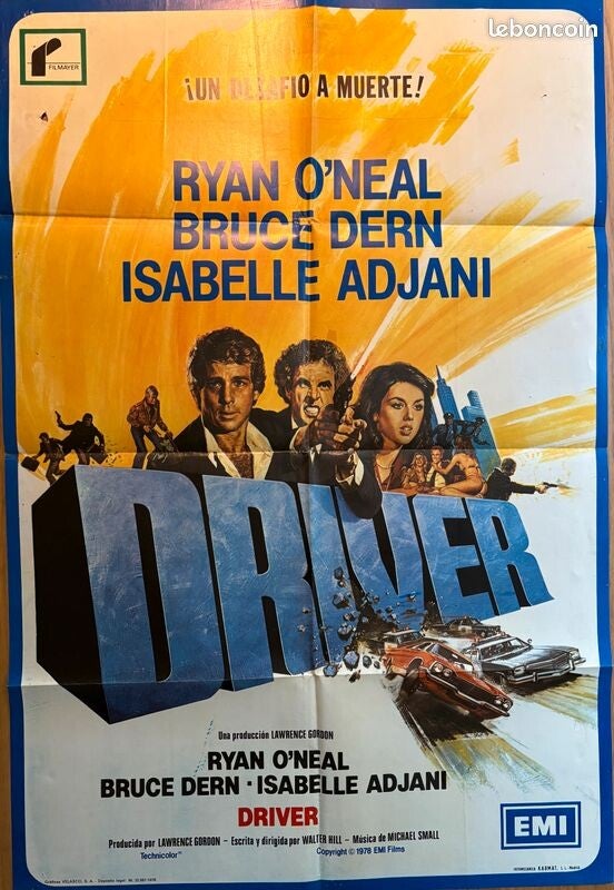 Affiche Cinéma originale espagnole du film "Driver", de Ryan O'Neal, Isabelle Adjani et Bruce Dern.