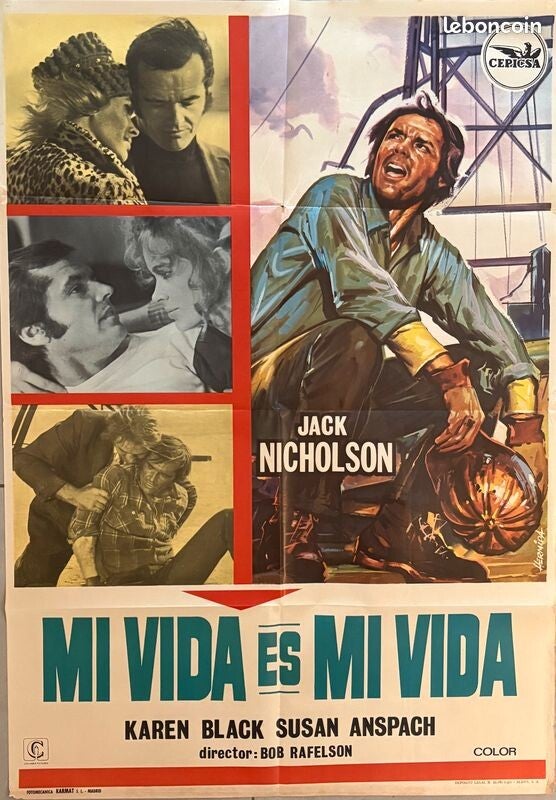Affiche Cinéma originale espagnole du film "Five easy pieces", avec Jack Nicholson. Il s'agit d'un format de 70 x 100 cm.