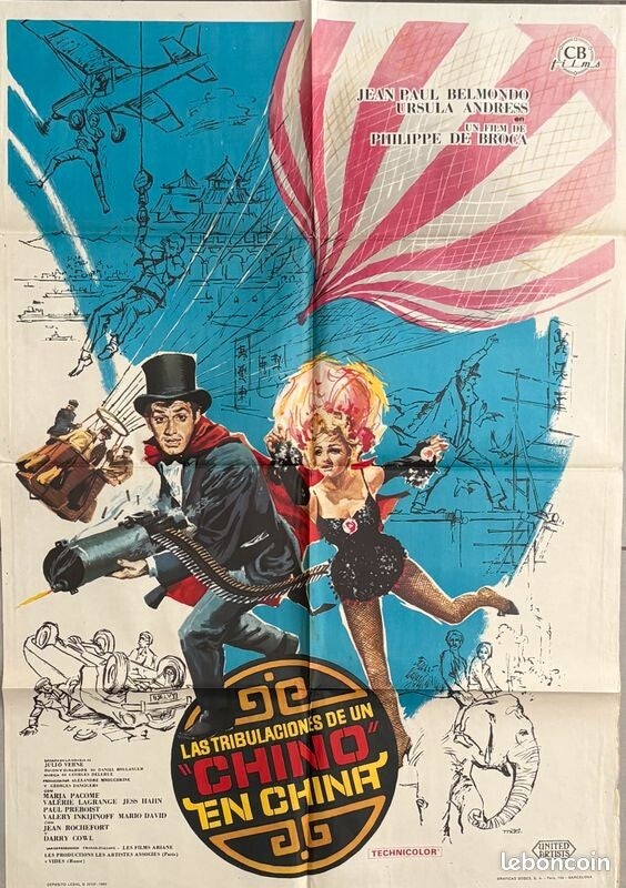 Affiche Cinéma originale espagnole du film "Les Tribulations d'un Chinois en Chine", avec Jean-Paul Belmondo et Ursula Andress.