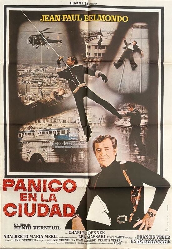 Affiche Cinéma originale espagnole du film "Peur sur la ville", avec Jean-Paul Belmondo et Charles Denner.