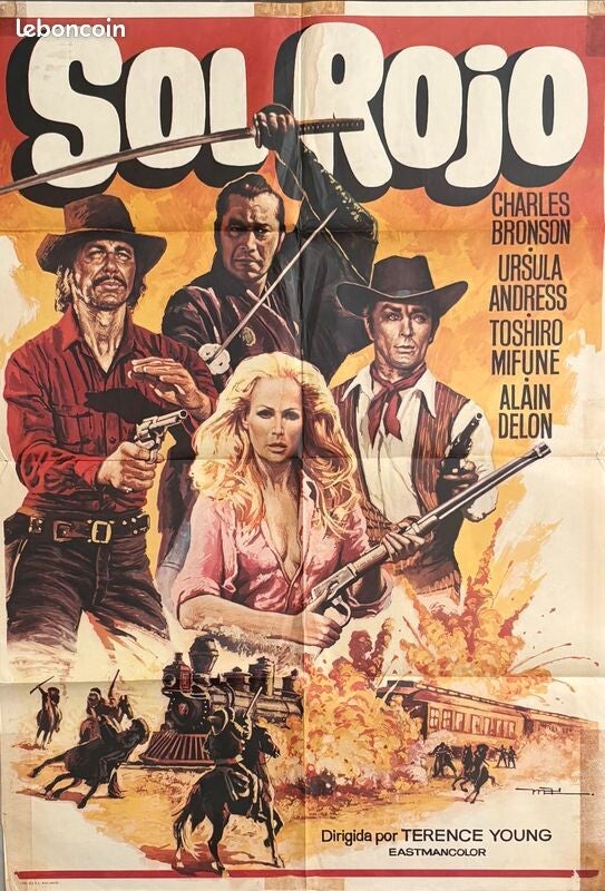 Affiche Cinéma originale espagnole du film "Soleil Rouge", avec Alain Delon et Charles Bronson.
