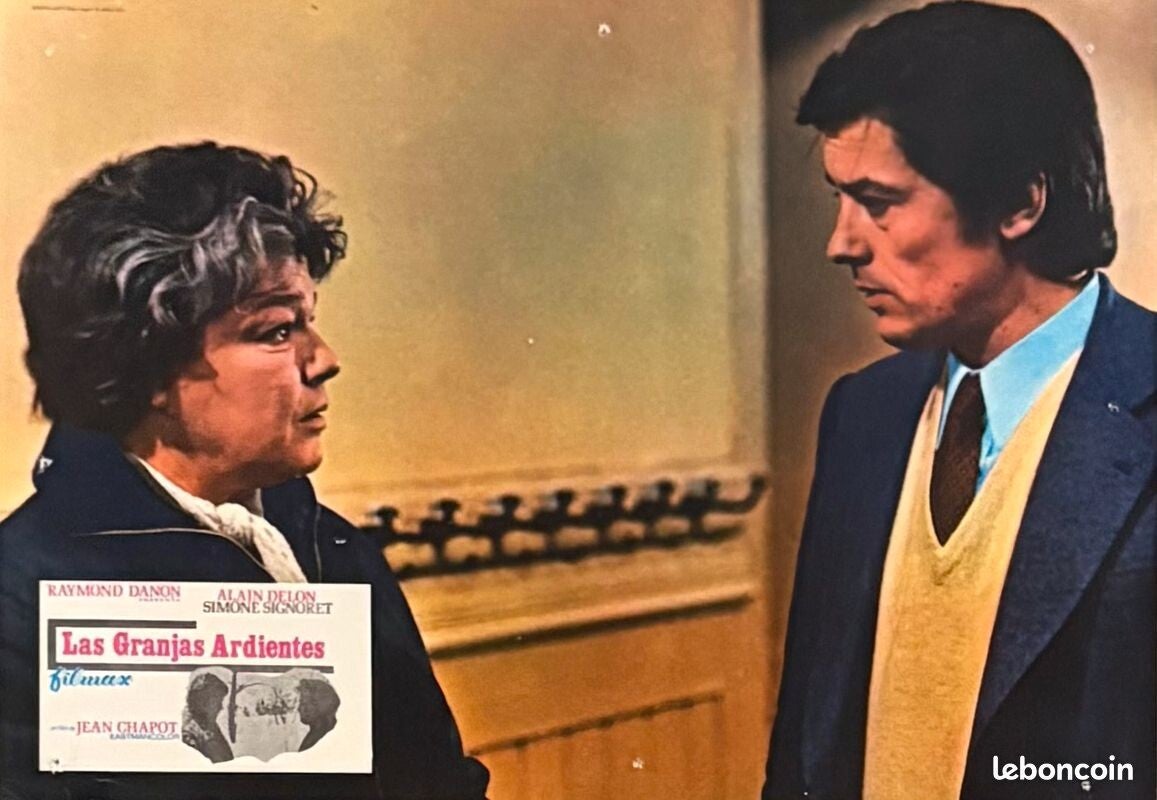 6 Lobby Cards espagnoles du film Les Granges brûlées, avec Alain Delon et Simone Signoret.