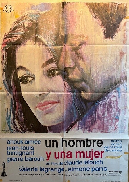 Affiche Cinéma originale espagnole du film "Un homme et une femme ", le film mythique de Claude Lelouch avec Anouk Aimée et Jean-Louis Trintignant.