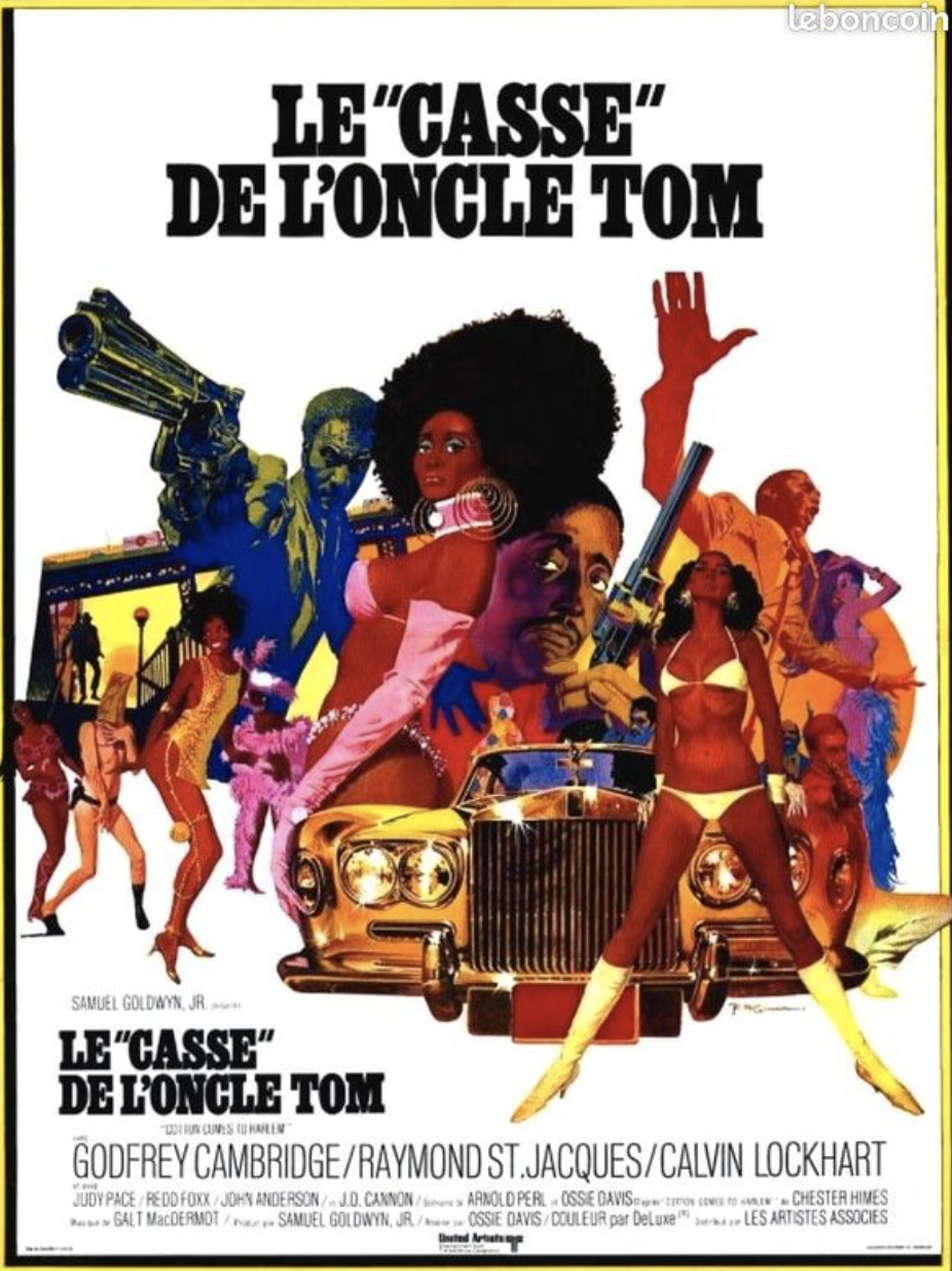 Grande affiche française du film mythique « Le Casse de l’Oncle Tom » (Cotton comes to Harlem en VO). Elle date de la première sortie française en salles, en 1970. Ce film est l’un des plus emblématiques dru mouvement de la blaxploitation.