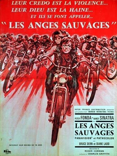 Grande affiche française du film mythique « Les anges sauvages » (The Wild Angels en VO), de Roger Corman avec Peter Fonda, Bruce Dern et Nancy Sinatra. Elle date de la première sortie française en salles, en 1966.