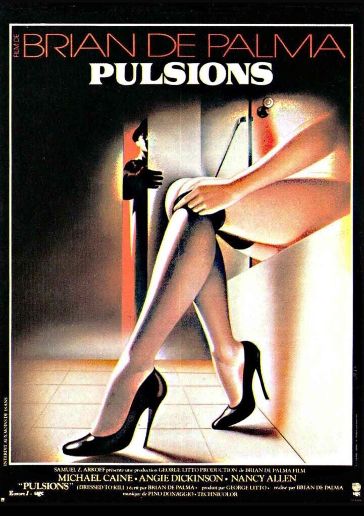 Grande affiche française du film mythique « Pulsions» (Dressed to kill en VO), de Brian de Palma avec Michael Caine. Elle date de la première sortie française en salles, en 1980.