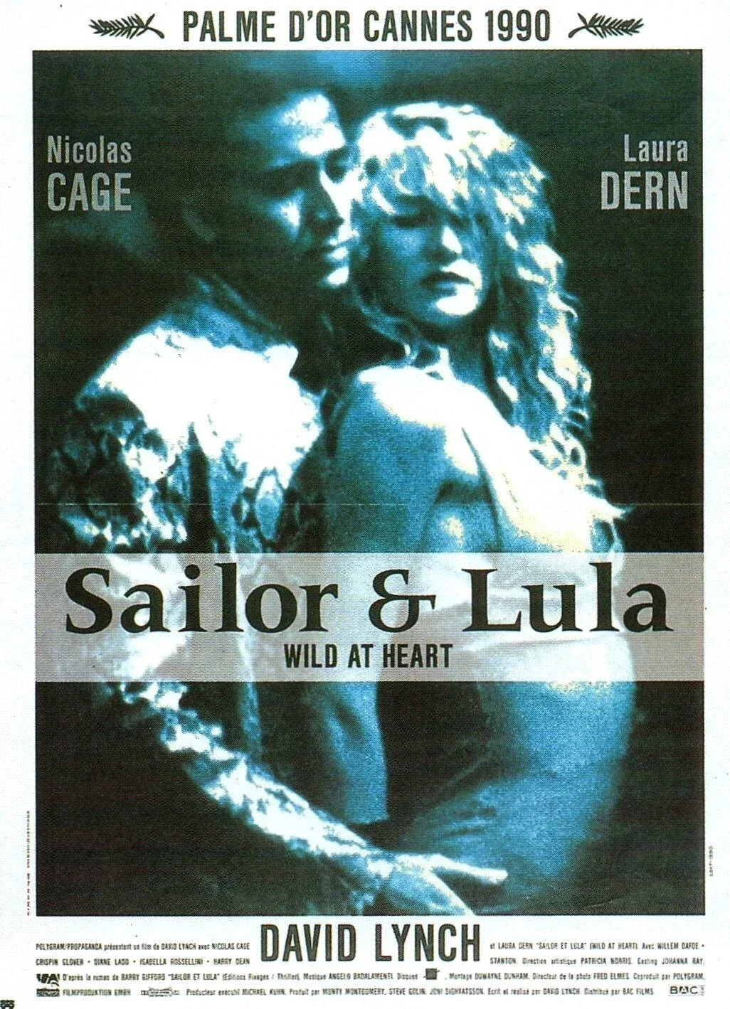Grande affiche française du film mythique « Sailor et Lula » (Wild at heart en VO), de David Lynch, avec Nicolas Cage et Laura Dern. Elle date de la première sortie française en salles, en 1990.