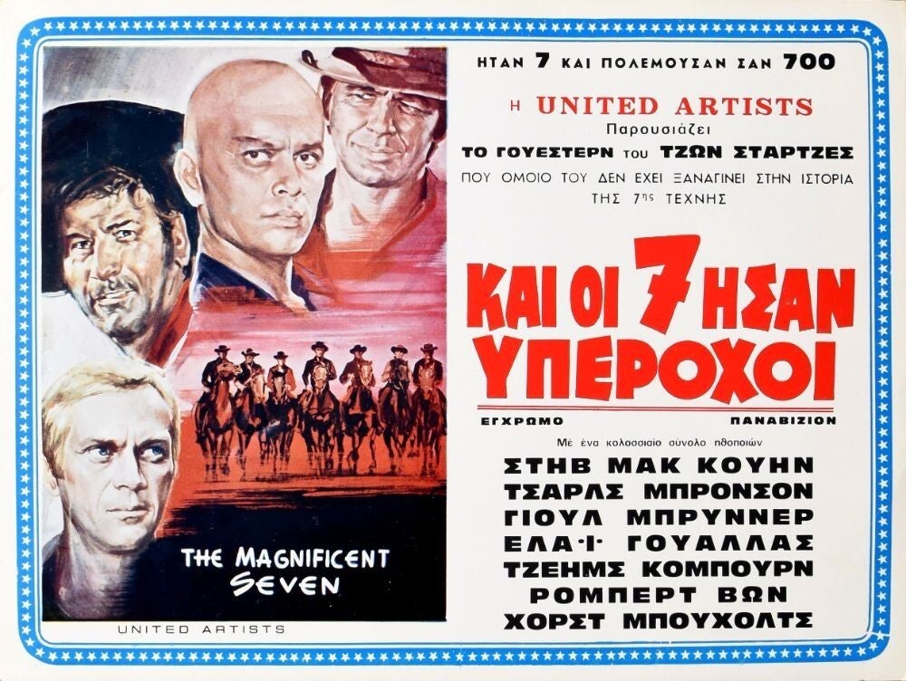 Affiche Cinéma originale grecque du film Les 7 mercenaires, avec Yul Brynner et Steve McQueen.