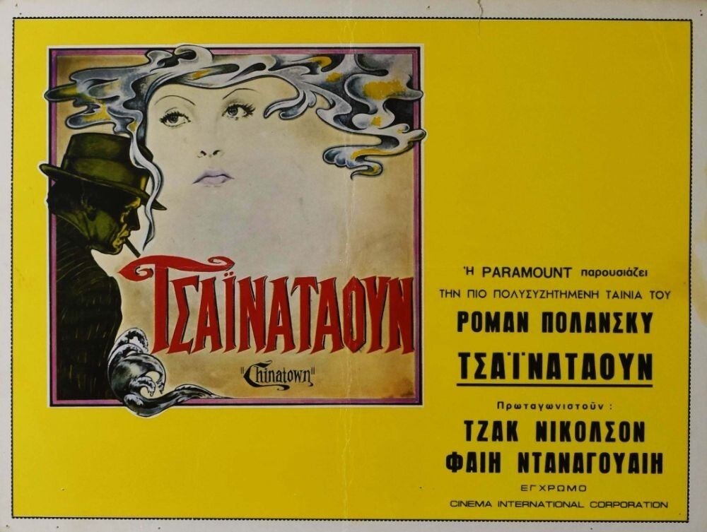 Affiche Cinéma originale grecque du film Chinatown, avec Jack Nicholson et Faye Dunaway.