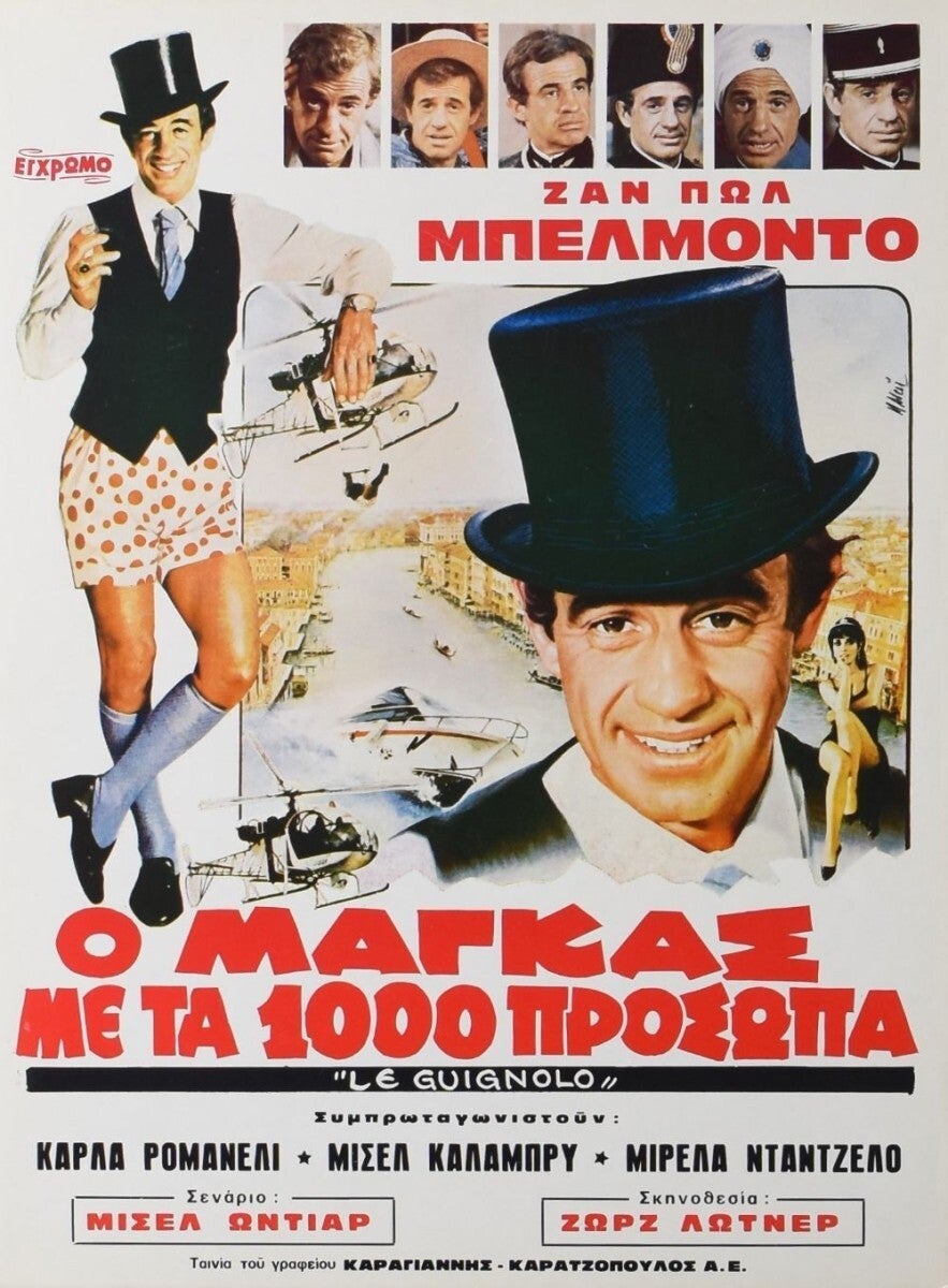 Affiche Cinéma originale grecque du film de Le Guignolo, avec Jean-Paul Belmondo et Michel Galabru.