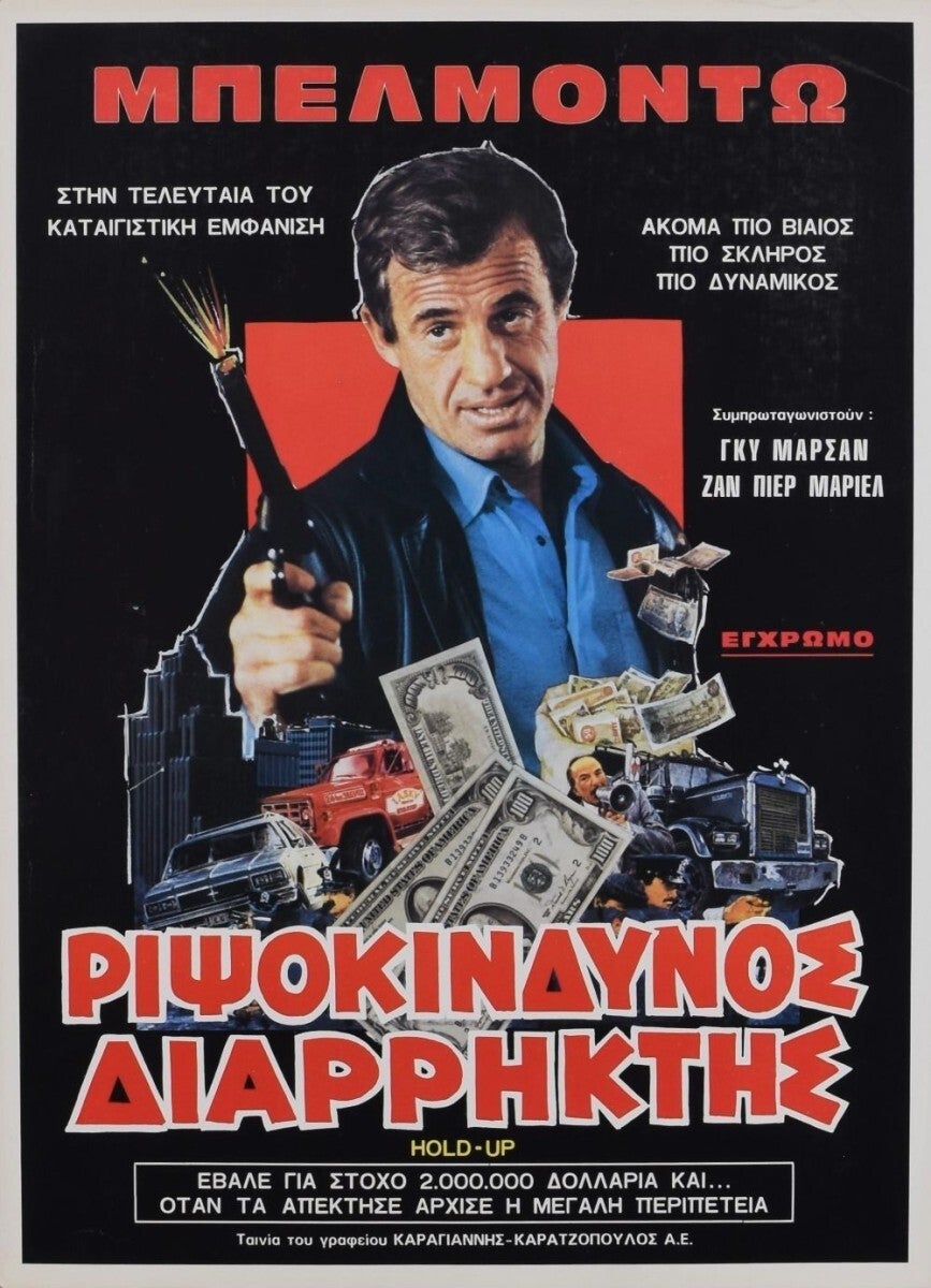 Affiche Cinéma originale grecque du film "Hold-Up", avec Jean-Paul Belmondo et Jacques Villeret.