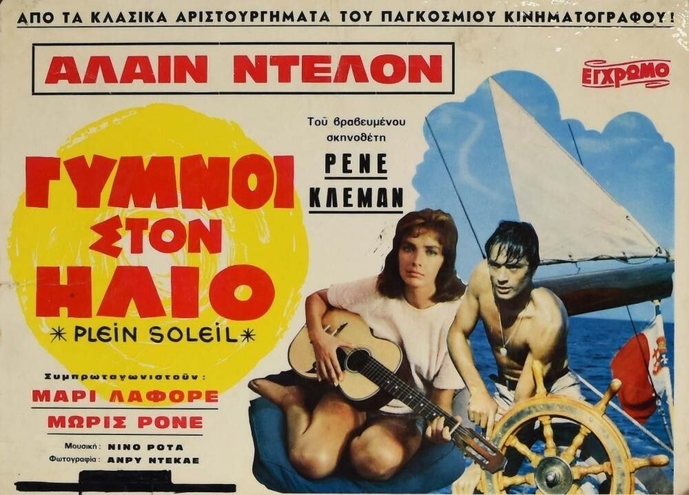Affiche Cinéma originale grecque du film Plein Soleil, avec Alain Delon, Marie Laforêt et Maurice Ronet.