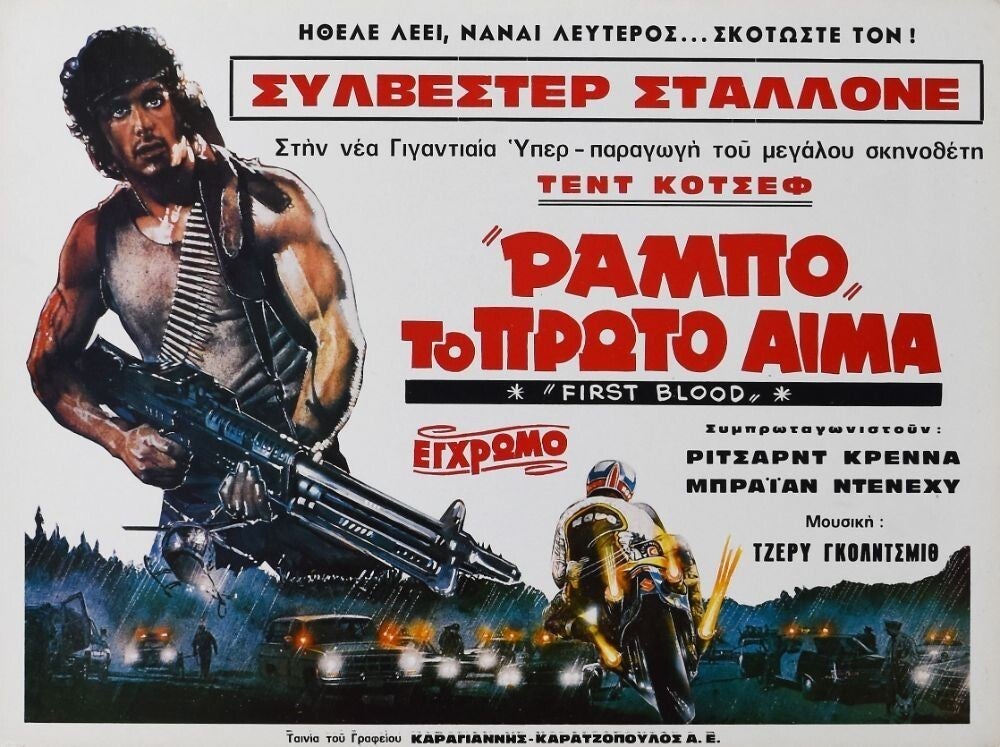 Affiche Cinéma originale grecque du film Rambo, avec Sylvester Stallone.