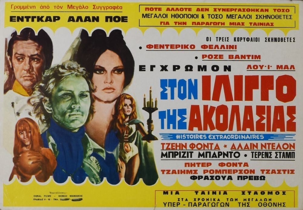 Affiche Cinéma originale grecque du film Histoires extraordinaires, avec Brigitte Bardot et Alain Delon.