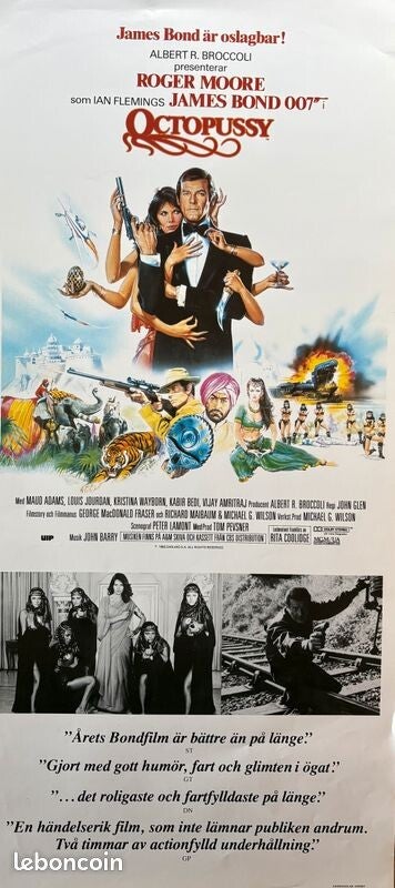 Affiche cinéma originale suédoise du James Bond Octopussy, avec Roger Moore.