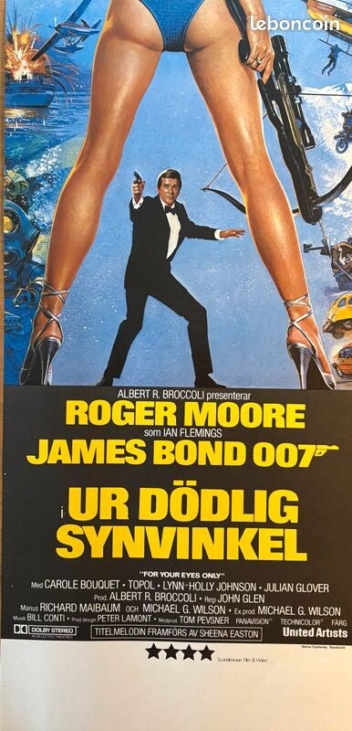 Affiche cinéma originale suédoise du James Bond Rien que pour vos yeux avec Roger Moore.
