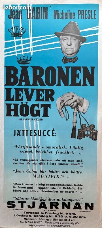 Affiche cinéma originale suédoise du Le Baron de l'écluse, avec Jean Gabin.