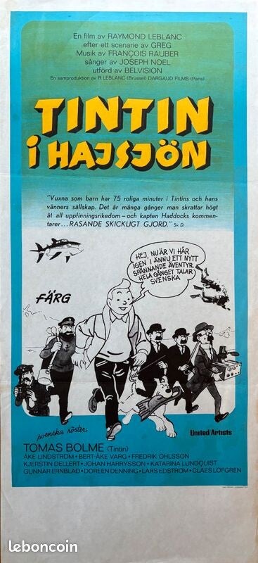 Affiche cinéma originale suédoise du dessin-animé Tintin et le lac aux Requins.